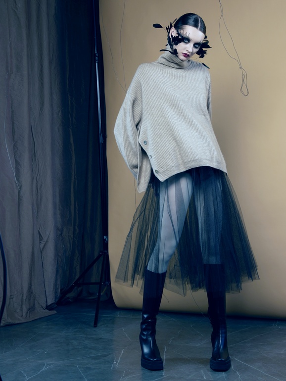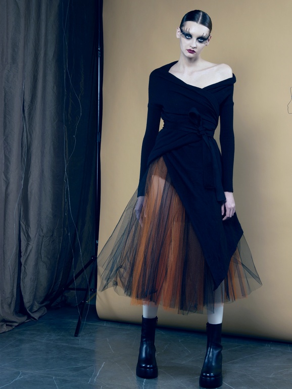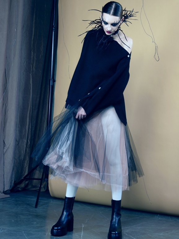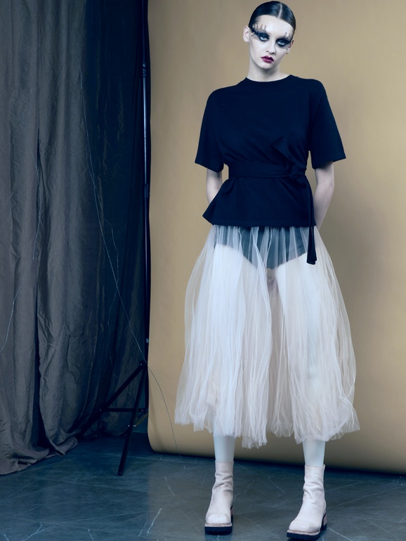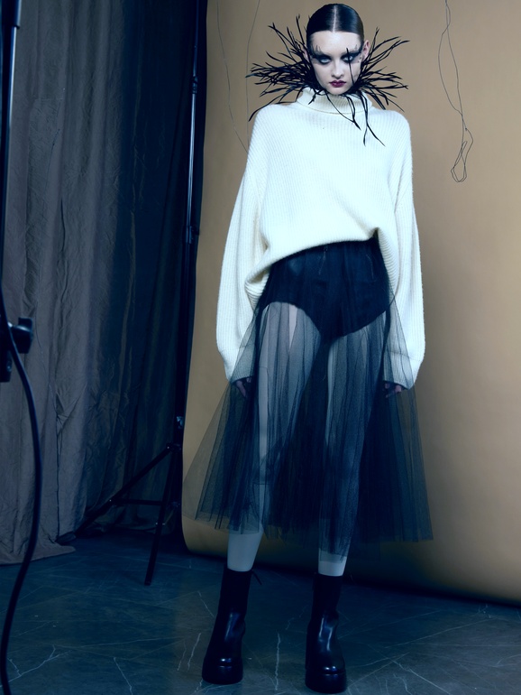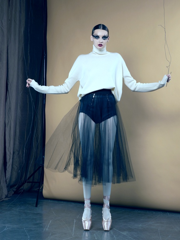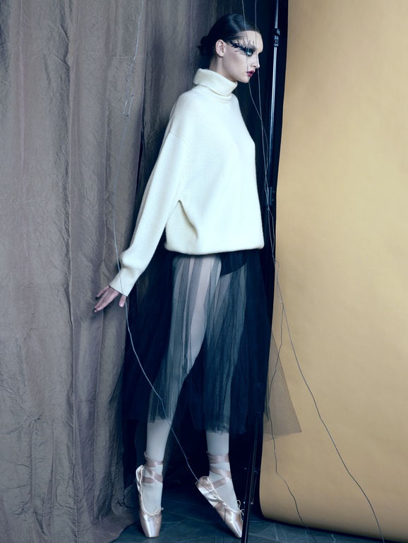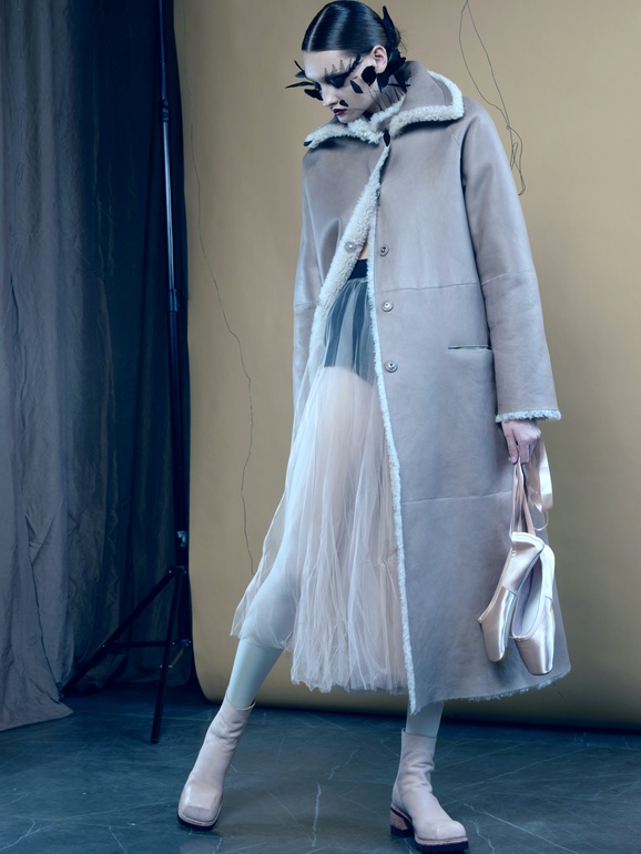 Коллекция Fall/Winter'24 вдохновлена искусством балета. Лаконичные силуэты и тонкие линии, ставшие уже визитной карточкой коллекций Светланы Тегин, выражены в платьях, юбках, дубленках и свитерах. Героиня коллекции — балерина, которой присуща легкость, грация и сила. После репетиции она накидывает на себя верхнюю одежду и выходит из зала.